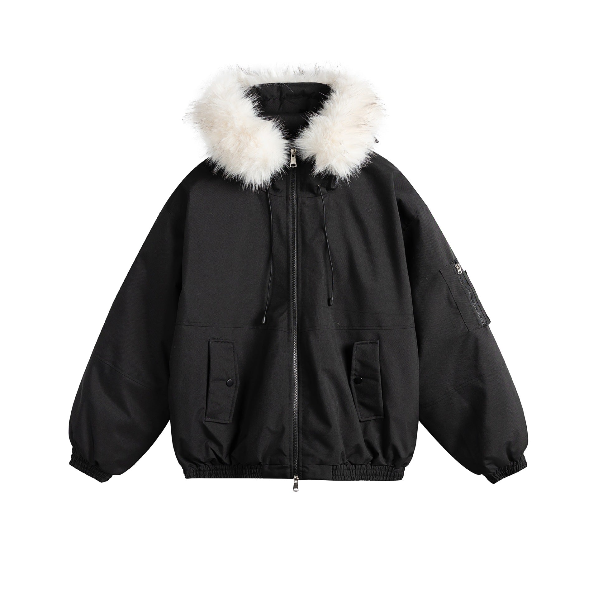 Removable Fur Collar Hooded Thickened Warm Parka Jacket